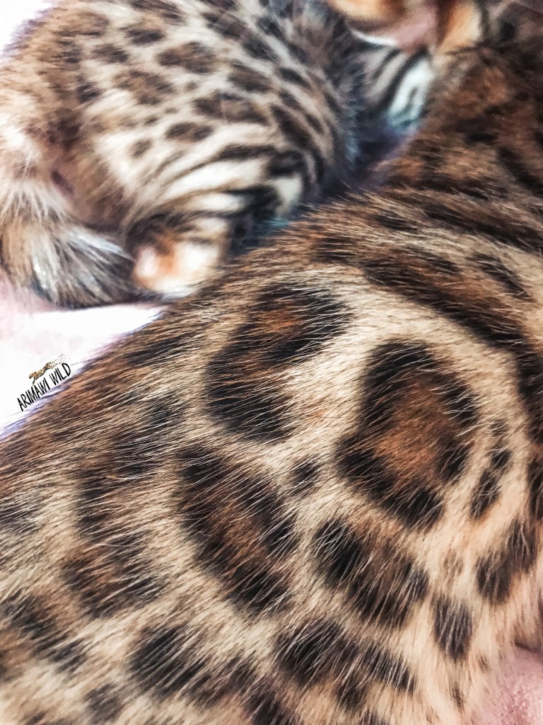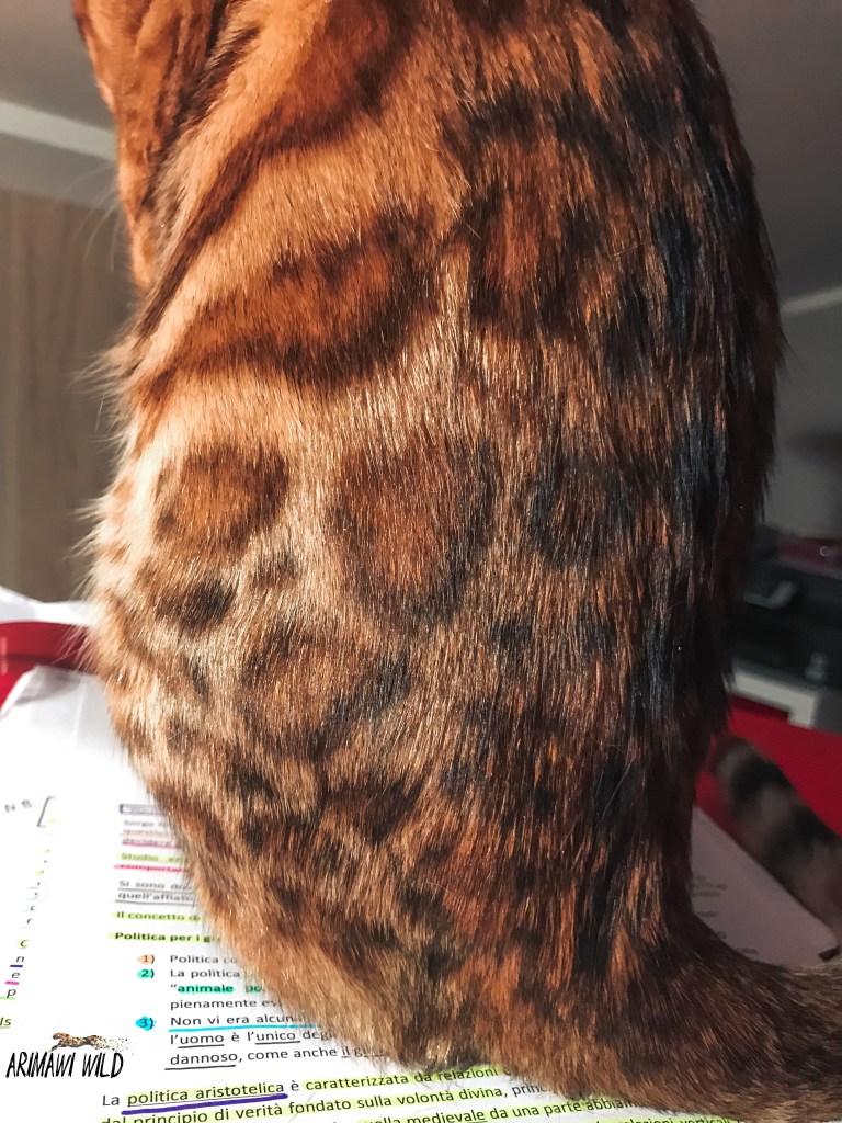 Il pelo del Bengala è molto corto ed è straordinariamente morbido e setoso. In alcuni gatti si può notare anche il ricercato “glitter“, dovuto alla trasparenza della punta del pelo che permette alla luce solare di passare tra di esso donando dei magnifici e ricercati riflessi dorati.